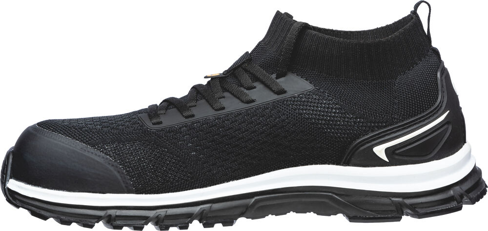 La chaussure de sécurité pour hommes Albatros ULTIMATE IMPULSE BLACK LOW séduit non seulement par une fonctionnalité exceptionnelle, mais également par son design jeune et moderne et son confort unique. Avec son empeigne attrayante en tricot noir et son col souple ELASTIC FIT, il a non seulement l'air sportif, mais s'adapte également parfaitement au pied et offre une liberté de mouvement ultime. Le siège sur la jambe en forme de chaussette vous protège de manière optimale contre la pénétration de poussière, de saleté ou de petites pièces. Une traction sur le talon facilite le démarrage.