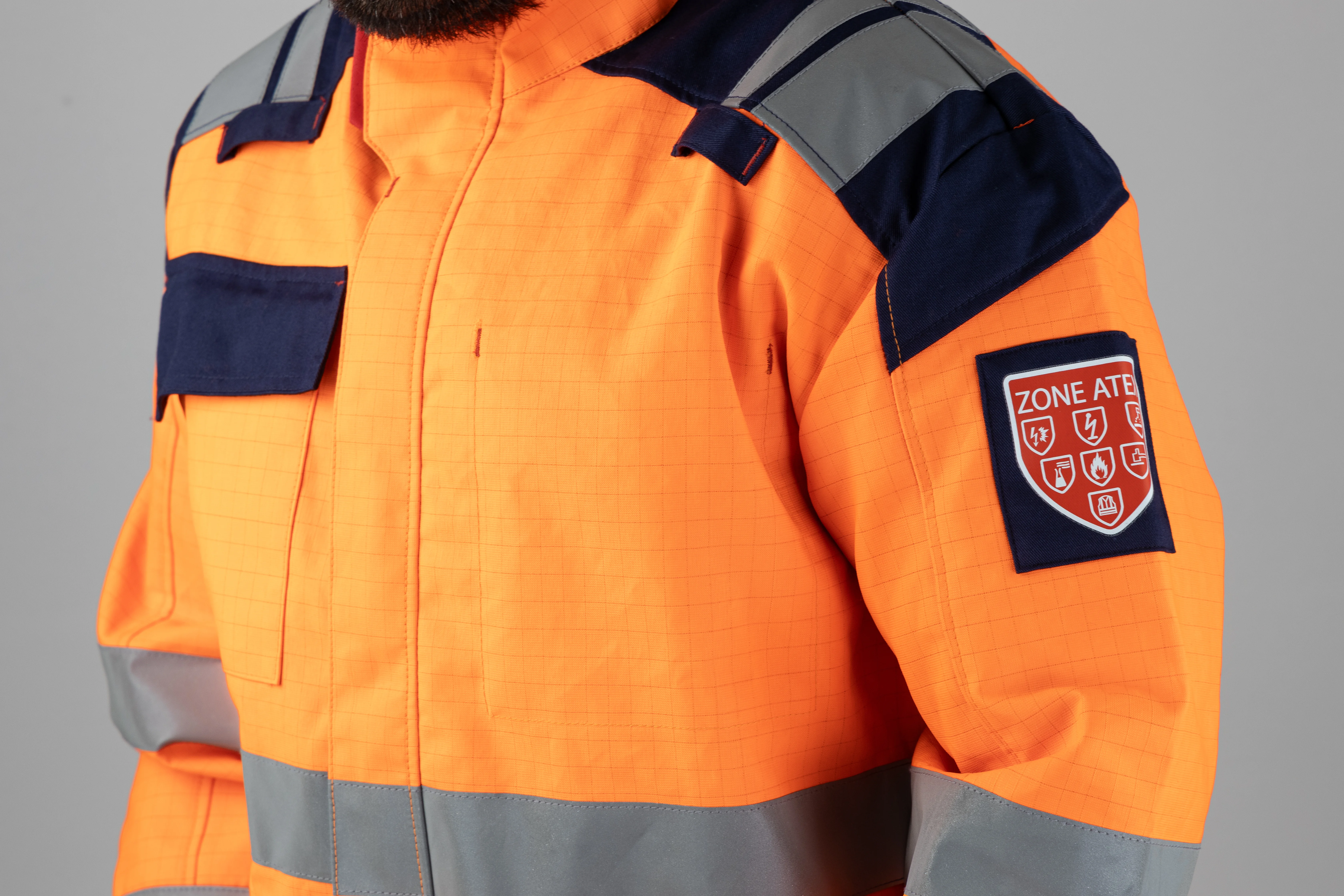 (NORMES : EN ISO 11612: 2015 / EN ISO 11611: 2015 / EN 61482-2: 2020 / EN 1149-5: 2018 / EN 13034: 2005+A1:2009 / EN 14404:2004+A1:2010 / ISO 20471:2013+A1:2016). 50% polyester 49% coton 1% antistatique