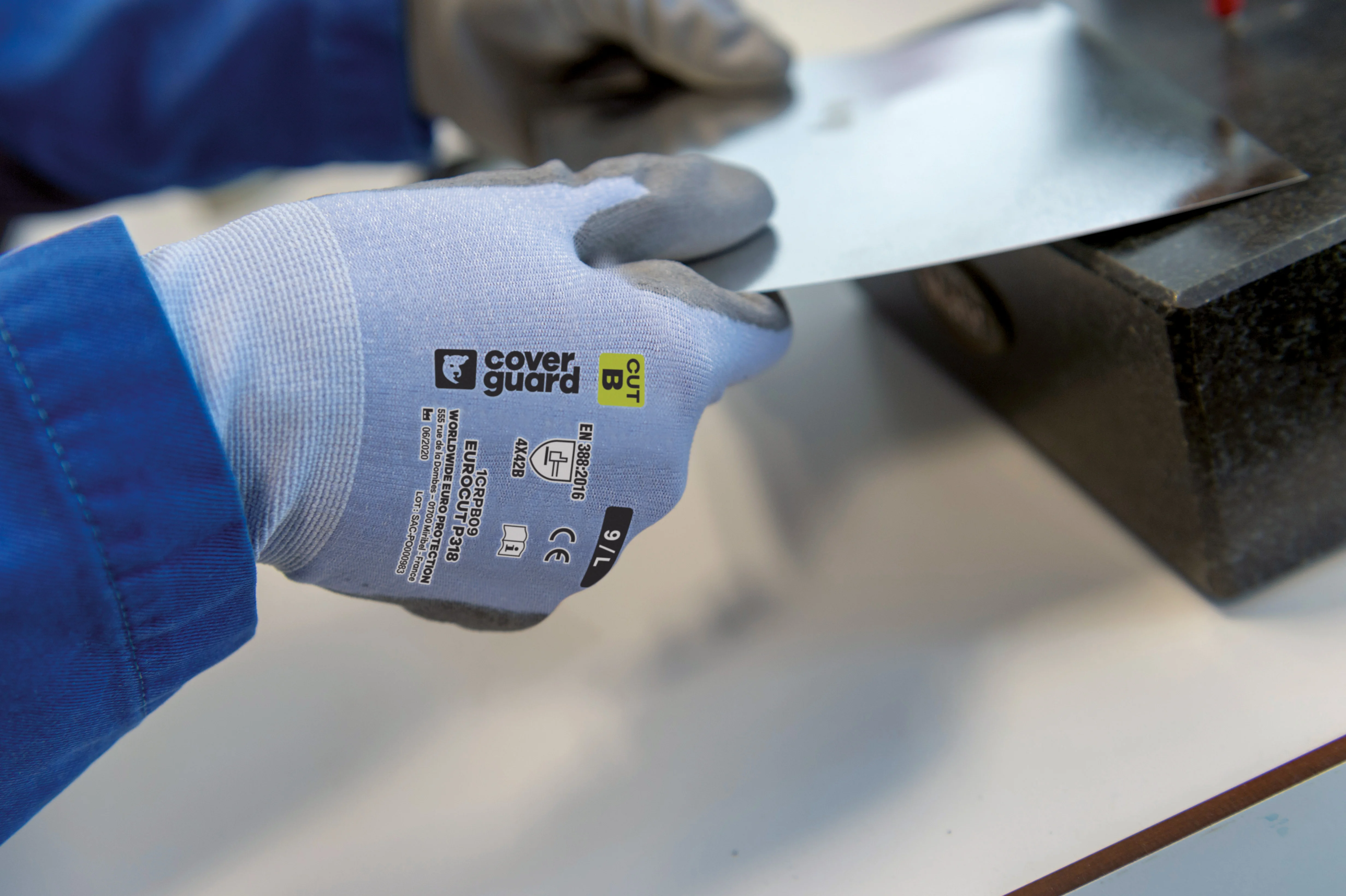 COVERGUARD - Lot de 5 paires de gants anti-coupure EUROCUT P318 - Enduit PU Bleu Taille 7