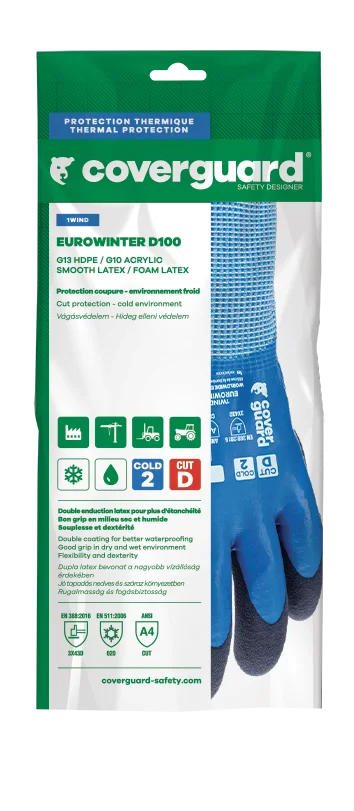 COVERGUARD - Lot de 5 - GANTS EUROWINTER D100 Tricot bleu sans couture à base de HDPE - pouce enduit - Forme ergonomique