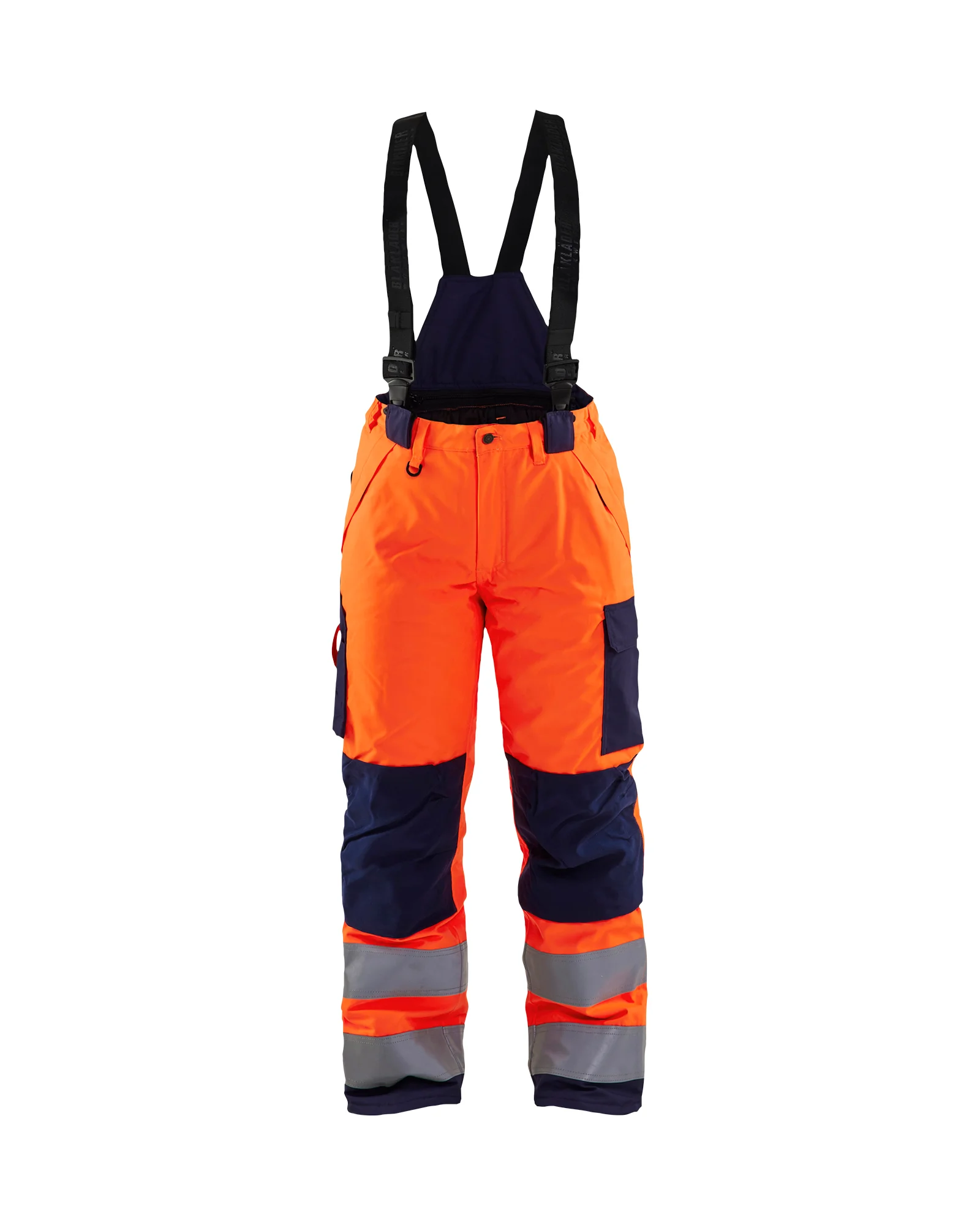 BLAKLADER - Pantalon de travail hiver à bretelles haute visibilité femme 7885 - Orange fluo/Marine