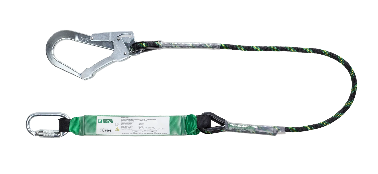 COVERGUARD - Longe à absorbeur EDGE en corde tressée avec connecteur acier ouverture 50mm