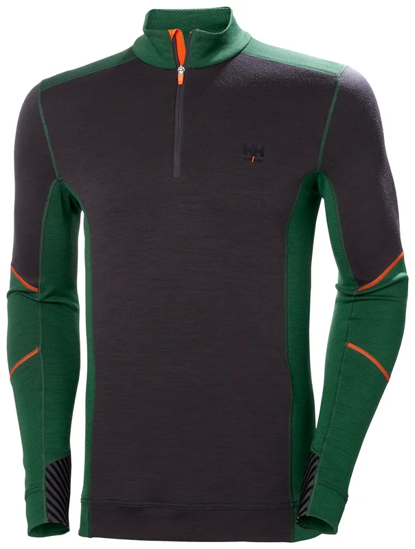 Helly Hansen - Sous-vêtement de travail technique ras de cou en laine demi zippé LIFA - Vert