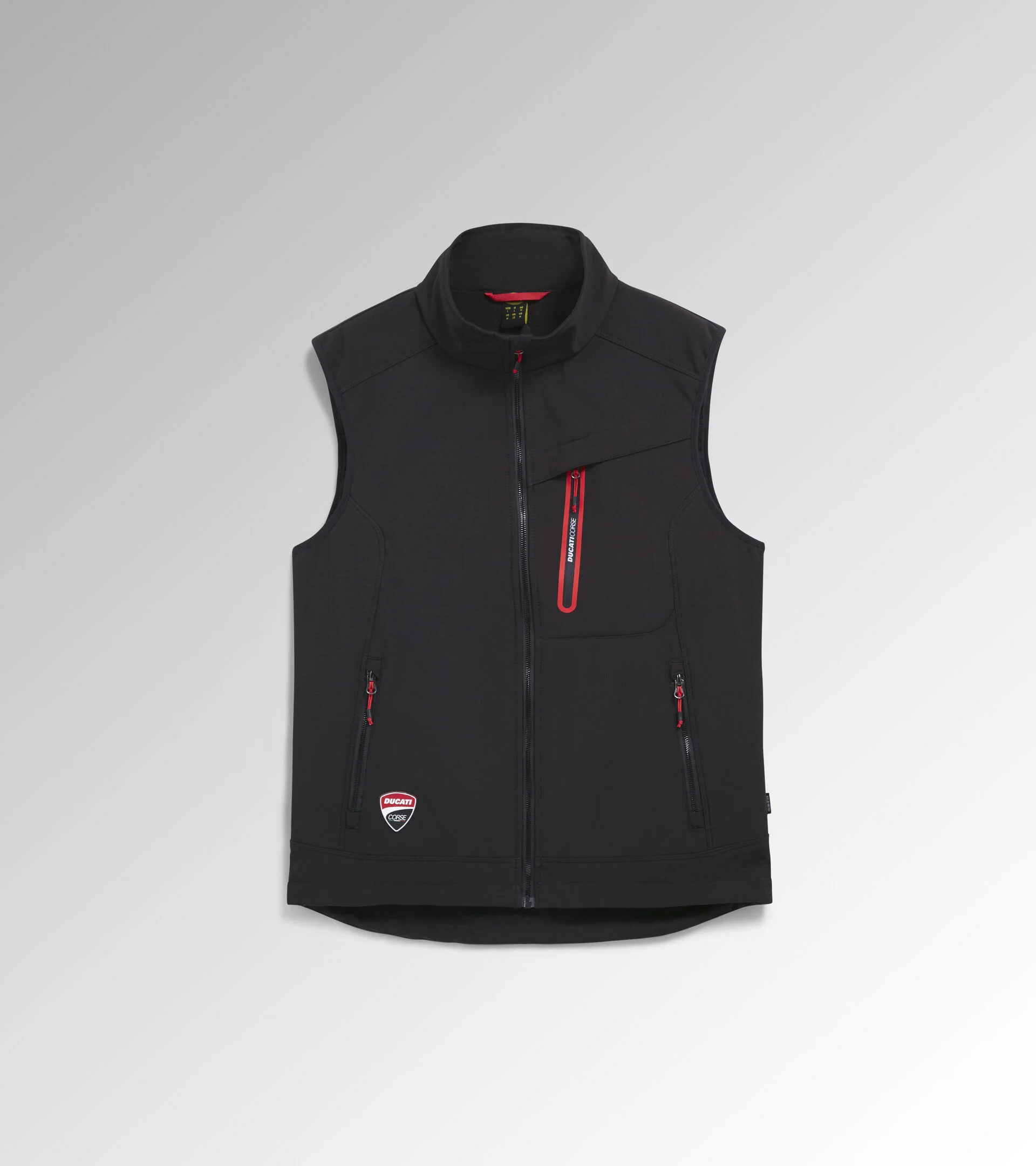 Gilet en tissu déperlant stretch avec griffe DUCATI CORSE. Poche poitrine avec glissière contrastante et détails réfléchissants. Poches latérales avec bouton-pression. Poche intérieure de rangement.